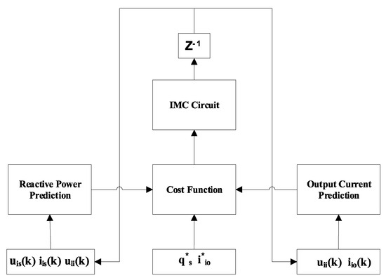 - Finally, the predicted values are used to calculate the cost function k. The predicted values that minimize the cost are selected and the switching state is output. Since the predictive controller is formulated in discrete time, it is necessary to derive a discrete time model of the load converter system. The predictive variables at the input side are as follows:where and , with