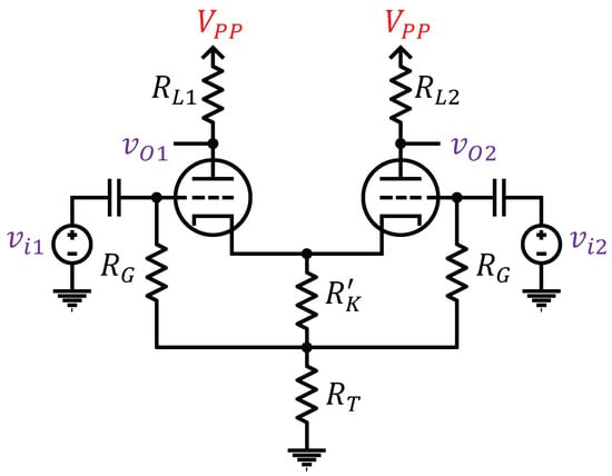 For clarity, we assume that and are the same for both tubes; one could study the effect of mismatched tubes by repeating the analysis with “1” and “2” subscripts on the small-signal parameters.