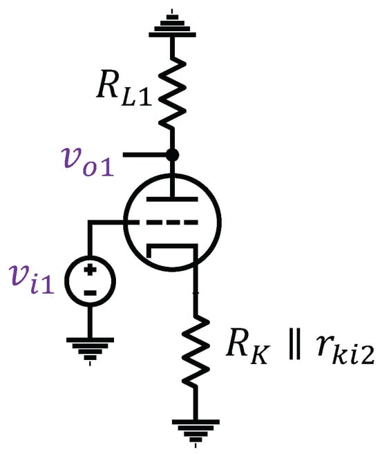 Combining the parallel resistances ( and ), Figure 18 clarifies that we have the form of a common-cathode amplifier. Applying (8) yields