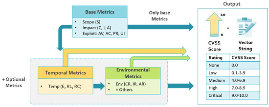 - FIRST. Common Vulnerability Scoring System v3.1: Specification Document. 2019. Available online: https://www.first.org/cvss/v3.1/specification-document (accessed on 1 October 2023).