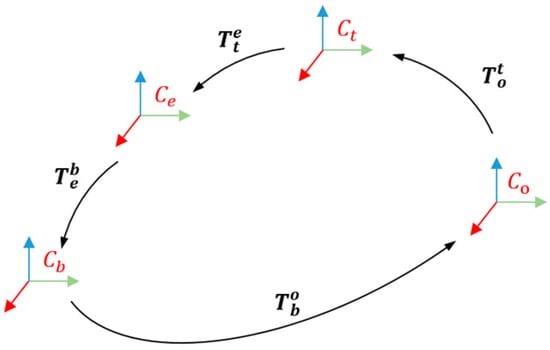 Within the closed loop formed by coordinate systems , , , and , the transformation matrices between these coordinate systems satisfy the following equation: