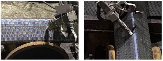 As depicted in Figure 3b, the two flaw detection cameras are designed to capture images of the two surfaces of the steel billet where flaws are likely to manifest. Each camera is meticulously positioned to ensure that its field of view encompasses the entire width of the billet. As illustrated, the image captured by Camera B has its x-direction correlated with the width of the surface. The flaw detection procedure identifies which surface (either A or B) presents a flaw. The flaw’s starting position along the x-direction is discerned using a recognition algorithm. For the y-direction coordinate of the flaw’s initiation point, both sections utilize identical encoders (refer to Figure 4) that are engaged with the moving billet. This mechanism facilitates the computation of the coordinate. The same method is employed to determine the flaw’s length. As a result, the visual system design negates the need for considerations related to the y coordinates.