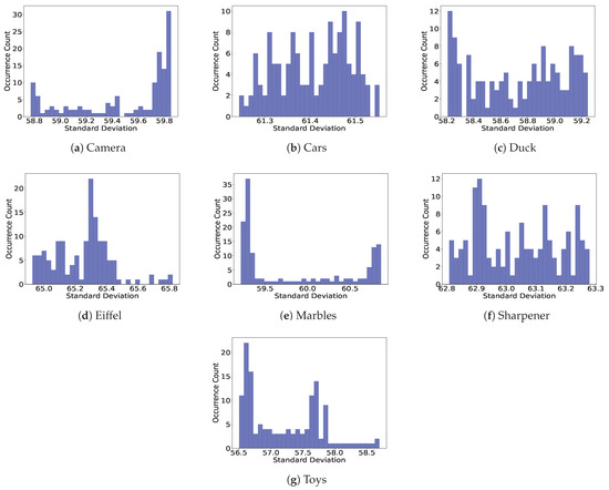 where P is the number of pixels available in each view. Having the mean value of each Sobel-filtered view in Equation (11), the standard deviation is then calculated in Equation (12) [58]: