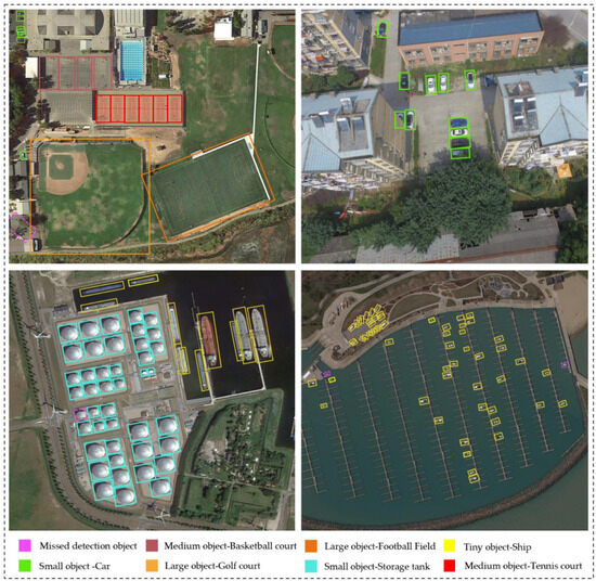 In general, for objects with a large scale, significant features, and a clear background, the networks could easily extract their rich feature information, then classify and locate them more accurately. However, for those complex objects with a tiny scale and fuzzy background, the network detection task becomes very difficult. Thus, the current aerial object detection network model not only relies on training on a large volume of data, but also requires comprehensive aerial data types and an advanced model architecture. On this basis, the model generalization and detection ability can be better improved.
