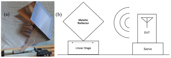 Figure 1b. The metallic reflector reflects the electromagnetic signal emitted by the DUT antenna during operation.