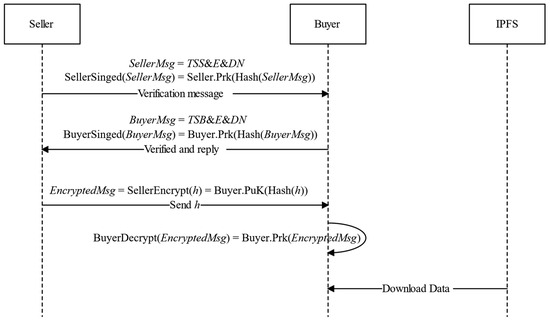 Due to advances in blockchain technology and the advent of the big data era, trading big data resources on blockchain platforms has become a popular direction to explore. Zyskind et al. [7] proposed a scheme that uses blockchain to protect personal privacy in a decentralized data environment. Chen et al. [8] proposed an incentive mechanism based on a federated blockchain with quality-driven auctions for data sharing on the Internet of Vehicles (IoV). The mechanism ensures trust in on-chain and off-chain data and maximizes social welfare. Jung et al. [9,10] proposed a set of accountability protocols for big data trading. However, they assume that brokers are trustworthy, which leads to privacy breaches and risks in practical application scenarios. Chen et al. [11] proposed a blockchain-based big data people management system to protect big sensitive data while providing information management operations such as querying, adding, and modifying. However, the system does not offer big data transactions between multiple parties and does not analyze the system’s security. Hu et al. [12] proposed a big data trading model that separates transactions from data with the help of a sidechain mechanism, protects data security, and provides methods to improve the usability of the data trading model, such as bargaining and quality assessment. Wei et al. [13] proposed a data resource protection scheme by simulating honest users to report the dumping behavior of malicious users. With the help of machine learning methods, a trusted resolution authority determines whether the user’s behavior constitutes malicious data dumping. Park et al. [14] proposed using smart contracts to publish data comments in the IoT data trading market.