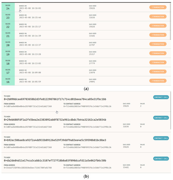 (a) Block generated by the test contract function. (b) TX_HASH of the generated transaction block.