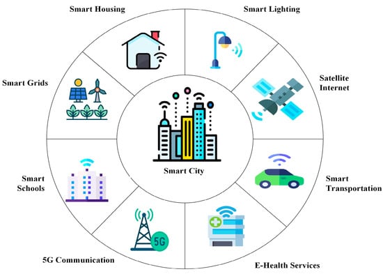 Over the past few years, smart cities have experienced substantial growth and expanded their horizon considerably. Notably, recent breakthroughs in IoT have opened exciting avenues, serving as pivotal technological foundations for smart cities [1]. These advancements facilitate the creation and automation of cutting-edge services and sophisticated applications tailored to the diverse needs of urban communities, thus benefiting a wide range of city stakeholders. Figure 1 illustrates key components of a modern smart city.