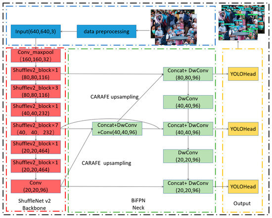 14] as the YOLOv5 backbone network: ShuffleNetv2 is a lightweight network structure that significantly reduces the number of parameters and computational requirements while maintaining high accuracy.