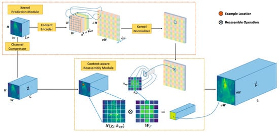 - Wang, J.; Chen, K.; Xu, R.; Liu, Z.; Loy, C.C.; Lin, D. Carafe: Content-aware reassembly of features. In Proceedings of the IEEE/CVF International Conference on Computer Vision, Seoul, Republic of Korea, 27 October–2 November 2019; pp. 3007–3016. [Google Scholar]