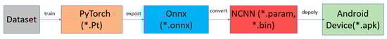 Figure 10, where the exported ONNX model is loaded and optimized using the NCNN framework on the Android device.