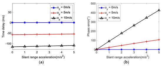 Analysis of the effect of acceleration on time delay and phase error. (a) Time delay; (b) phase error.