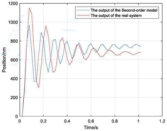 According to Equations (6) and (7), the values in the model are close to the actual values. Moreover, as shown in Figure 6, the step response of the system is in line with the that of the obtained second-order model.