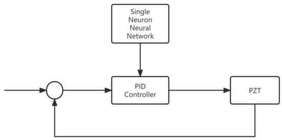 where e is the position error measured with the interferometer, η is the learning rate of a single neural network, u is the output of the controller, and K is the scaling factor of the neural network. The block diagram of this controller is shown in Figure 7. The micro-positioning system calculates the control variable using a single-neuron PID controller and sends it to the PZT.