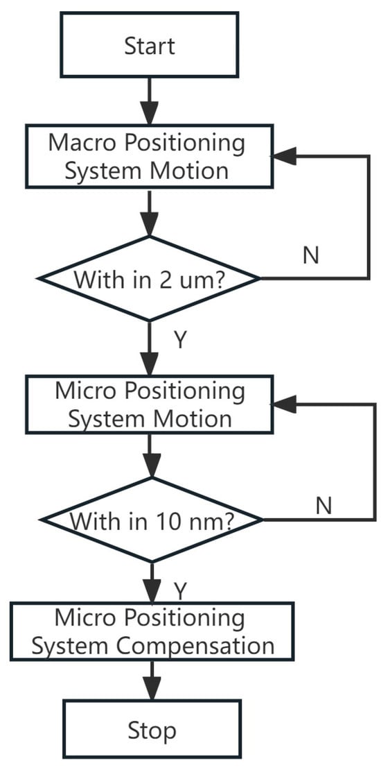 To solve the contradiction between accuracy and stroke, Sharon first proposed the concept of macro–micro drive in 1984 to solve the problem of the end-effector positioning of robots, which was later widely applied in high-precision positioning systems [13,14]. The macro–micro drive method enables a positioning system to achieve ultra-high-precision positioning within a stroke range of hundreds of millimeters [15,16].