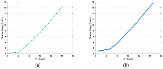 The step resolution of the macro-positioning system can reach the submicron level, thus reducing the stroke demand of the micro-positioning system. Therefore, the middle section of the flexible hinge is selected for the micro-positioning system, which has the highest linearity for ease of control.