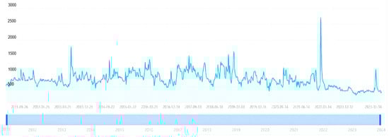 Trends in esports-related searches on Baidu from 2011 to 2023.