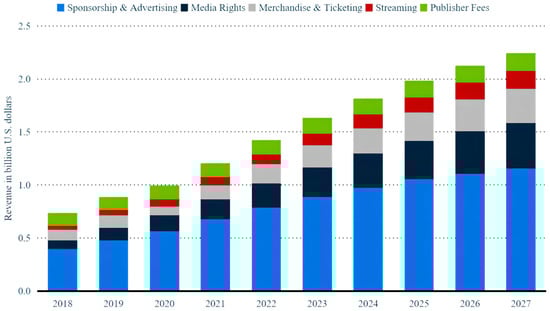 - Revenue of the eSports Market Worldwide from 2018 to 2027, by Segment. Available online: https://www.statista.com/forecasts/1308525/worldwide-esports-revenue-by-segment (accessed on 8 December 2023).