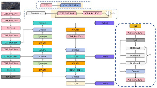 In today’s society, due to the continuous advancement of urbanization and rapid economic development, the number of motor vehicles is consistently increasing. This trend is leading to a more complex and congested road traffic environment [1,2,3]. This increased traffic complexity poses significant challenges to urban residents’ mobility and escalates the risks of traffic accidents and violations [4,5]. In light of these issues, the development of intelligent traffic systems becomes particularly critical. Such systems not only have the potential to enhance traffic flow efficiency but also hold the promise of substantially improving road safety. At the core of intelligent traffic system technologies lies the accurate identification of motor vehicles, pedestrians, and other entities on the road, which is one of the most vital tasks [6,7]. Target detection technology, as a key component of intelligent traffic systems, provides an effective means to automatically recognize and track various entities in complex road traffic environments. In recent years, the emergence of deep learning has gained widespread attention in the field of target detection due to its exceptional performance. Deep learning models not only achieve highly accurate target detection but also possess strong adaptability and excellent generalization capabilities, making them an ideal choice for addressing intricate road traffic challenges [8,9].