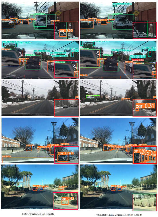 Performance analysis of YOLOv8-SnakeVision detection and YOLOv8n detection results comparison.