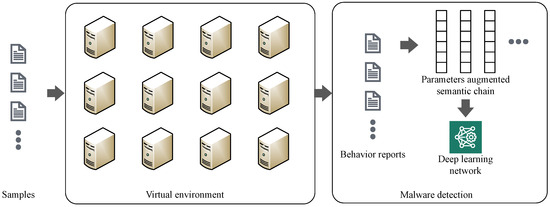 The overview of dynamic malware detection using parameter-augmented semantic chain is shown in Figure 1. At the beginning of our detection process, we need to collect the behavior reports, which are conducted by virtual environment like sandbox, of all the target samples. Then, we analyze the reports and extract parameter-augmented semantic chain from these reports. Eventually, we would convert obtained semantic chain into feature vectors and analyze by a deep learning network.