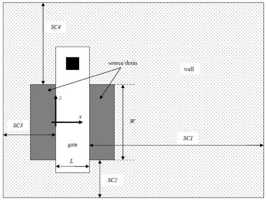 where SC1–SC4 are the spacings from the four edges of the well to the edges of the device as shown in Figure 1. Equations (1)–(4) show that VT0 depends on the spacing from the edge of the well to the edge of the device.