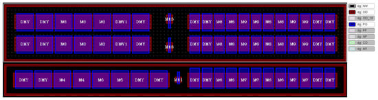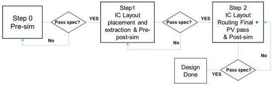 IC design and layouts in advanced manufacturing processes must comply with relevant procedures in PDK libraries. In the current era in which PDKs and interoperable PDK tools are often used in IC design, various layout approaches have been proposed, such as the use of schematic-driven electronic design automation tools [9,12] and schematic-driven layout (SDL) flowcharts. Regarding commercially available design tools, the LakerOA and CCSE IC layout tools developed by Synopsys feature SDL functions and can be used in combination with a PDK and the interoperable PDK libraries provided by foundries. The Virtuoso tool developed by Cadence has similar functions. In this study, an algorithm was developed to achieve the proposed design process through an automation program.