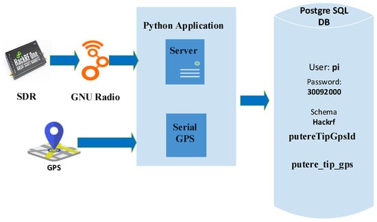 To facilitate the integration between the GNU Radio interface, the GPS module, and the “hackrf” database, an application named “ServerPutereTipGps” was developed using the Python programming language. This application encompasses the following components: