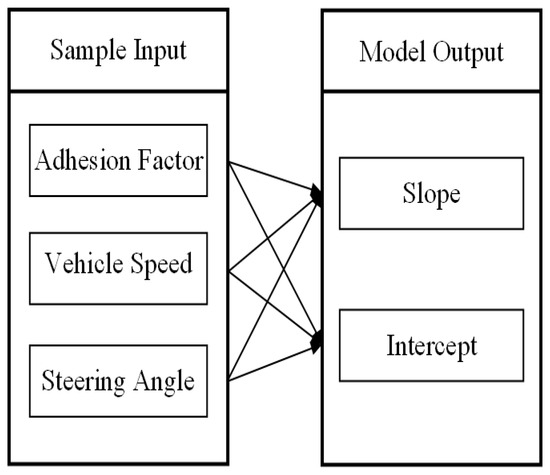 To obtain the simulation dataset for the phase plane, the novel quadrilateral method is employed, which records the partition information of the stability area. The trajectory of the phase plane is primarily influenced by the front wheel angle, longitudinal velocity, and adhesion coefficient. In this study, the front wheel angle interval is set at 2°, ranging from 0° to 6°; the longitudinal speed interval is set at 20 km/h, ranging from 20 km/h to 80 km/h; and the coefficient of adhesion interval is set at 0.2, ranging from 0.2 to 0.8. Utilizing the sampled data, a MISO random forest regression model is established to output the slope and intercept of the quadrilateral boundary, as depicted in
