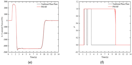 The tires’ longitudinal force must not exceed the limits of the ground adhesion conditions. The braking force of each wheel must satisfy Equation (46).