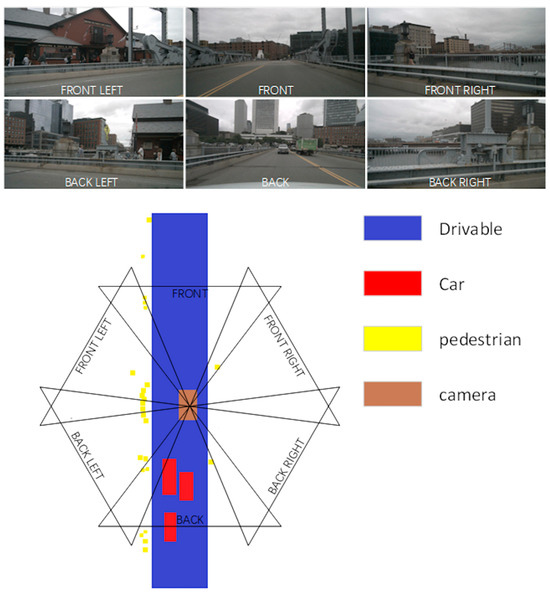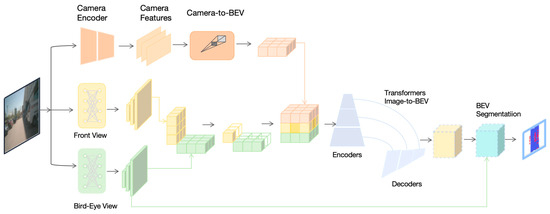 BEV map prediction is a methodology that employs bird’s-eye view maps to estimate the position and orientation of three-dimensional objects [27]. This approach significantly enhances the perception capabilities of autonomous driving systems, contributing to improved safety and efficiency.