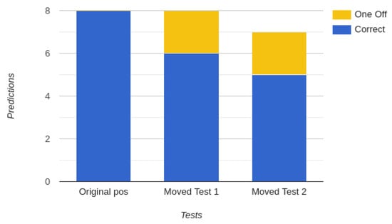 Figure 6 shows specific results from a small selection of tests while Figure 7 shows the high levels of accuracy we were able to reach when focusing on honing Random Forest with two antennas. From this, we can see the accuracy reaches 100% while the chairs are all in their original position; however, predictions remain precise while chairs are moved, and most mistakes are only out by one.