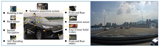 Naturalistic human driving data are the basis for achieving humanlike driving. The routes covered in the experiment are highways in Chongqing, China. The data collecting system, embedded in the third-generation HAVAL H6, consists of a target detection and fusion computer, a scenario acquisition system, and advanced multisource heterogeneous sensors, including an 80-channel lidar on the top, four solid lidars at the corners, front and rear radars, recording cameras, etc., as shown in Figure 2. When the targets enter into the blind spot of the rotating lidar, the four corner solid lidars will provide the lidar sensor fusion module with the targets’ point cloud, enhancing the reliability and stability of target detection and tracking. The image information from cameras contributes to reconstructing the traffic scenarios and estimating the lateral distance to the lane. Additionally, the inertial navigation module measures the physical states of the ego vehicle. During the data collection process, each sensor worked at a frequency of 50 Hz and transmitted data to the scenario acquisition system, where the data was saved after Kalman filtering. With this equipment, the data collection system is capable of obtaining the dimensions, category, position, velocity, and acceleration of surrounding obstacles, as well as the lateral distance to the lane, velocity, and acceleration of the ego vehicle.