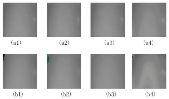 Through the existing defect-free image and the defect image corresponding to this defect-free image generated from the CycleGAN1 model, these two images become the input pair of the CycleGAN2 model, and CycleGAN2 trains each pair of images separately. As shown in Figure 5, (a1–d1) are non-defective sample images, while a2–d2 are corresponding defective sample images generated by CycleGAN1. The corresponding generated defect sample image and the defect-free image into the CycleGAN2 model were input as the target image and input image in the training process of this model, respectively. During the training process, the defect-free input image gradually iterates, accumulating and superimposing defect information until the defect samples are generated, and this superposition process is the generation process of sample masks.
