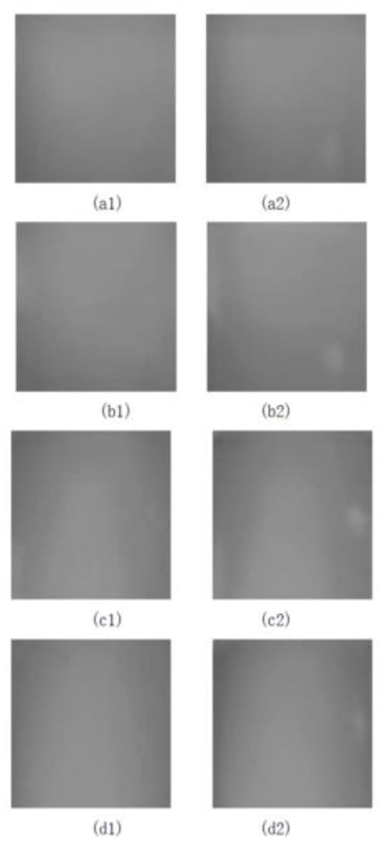 Paired image sample for CycleGAN2 training, (a1–d1) are non-defective sample images, (a2–d2) are corresponding defective sample images generated by CycleGAN1.