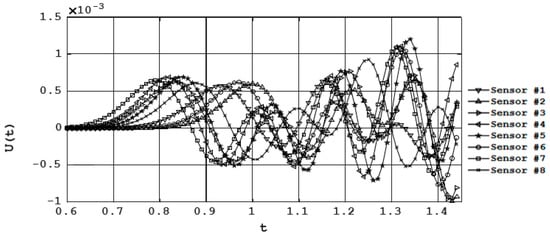 Data obtained from 8 sensors during the same period of time (time in milliseconds, U in micrometers).