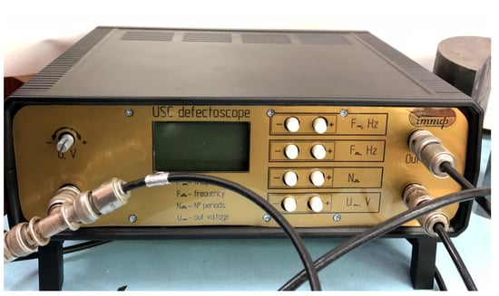 Homogeneous materials were used in this study, for which the propagation speed of ultrasonic waves does not depend on the molecular structure of the medium. This allows, by measuring the time of delay and damping of waves at different points of the controlled object, the formulation of conclusions about the properties of the medium to determine defects of various shapes and origins [23,24,30,31].