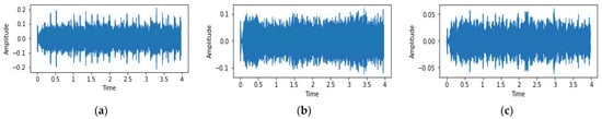 Theodoropoulos et al. conducted a study on detecting early signs of defects in ship operating conditions through a 2D-CNN model []. Hou et al. developed an AE-VBGMM that combines an autoencoder and a Bayesian Gaussian model to detect malicious nodes in an IoT environment []. In addition, Ahn et al. conducted a study on detecting abnormal motion inside a machine through supervised learning and unsupervised learning []. As a result, it achieved up to 99% accuracy by overcoming the disadvantages of existing machine learning algorithm structures such as SVM and BP-NN []. However, the LSTM model has disadvantages in that it is difficult to extract nonlinear characteristics of data and is slow []. Studies on these various artificial intelligence algorithms have resulted in high performance. In particular, 2D-CNN has become a hot research topic in the field of machine defect detection based on sound data, and various Fourier transform techniques such as STFT, WT, and HHT are used in the pre-processing of sound data.