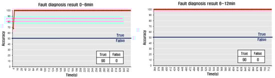 Table 4 shows the results of the failure diagnosis experiment using the developed model and the embedded system. Although the developed model showed low accuracy compared to the test dataset, it showed high accuracy of 94.89–99.44% when used on an embedded system similar to the actual working environment.