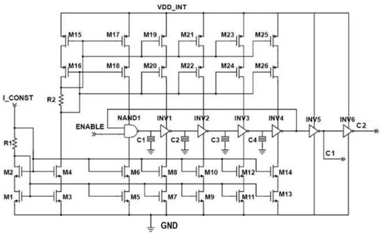 - Hamman, H.H.; Hassan, K.M.; Ibrahim, S.A. An Ultra−Low−Power Process−and− Temperature Compensated Ring Oscillator. In Proceedings of the 2022 9th International Conference on Electrical and Electronics Engineering (ICEEE), Alanya, Turkey, 29–31 March 2022; pp. 1–5. [Google Scholar] [CrossRef]