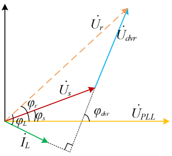 The EOC-DVR works in the energy-minimized compensation mode, i.e., , the grid voltage and the PF of the load should meet . Then, the power output from EOC-DVR is 0. According to Equation (10), the compensation voltage per-unit value can be defined as:
