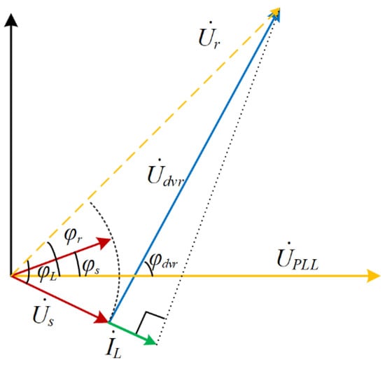 Energy minimization compensation is shown in Figure 4. It is made perpendicular to the load current by adjusting the phase of the EOC-DVR compensation voltage. When the load voltage amplitude remains unchanged, the EOC-DVR reduces active power output and energy loss to extend the duration of grid voltage compensation while the load voltage amplitude remains unchanged. When voltage dips deeply, EOC-DVR ensures that the load voltage returns to the original state before the dip by providing active power. However, at this time, EOC-DVR needs to output a relatively large voltage amplitude, and the increase in the voltage amplitude also means that more energy is consumed, so the energy minimized compensation cannot reach the purpose of extending the voltage compensation.