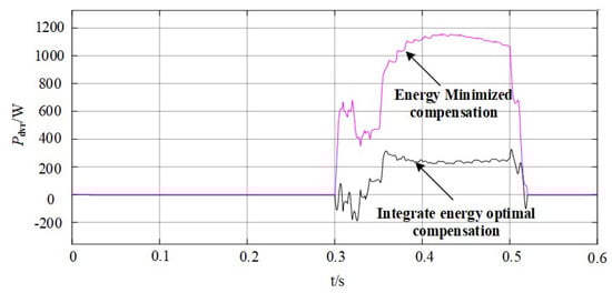 Figure 13 shows the comparison between the energy minimized compensation and the integrated energy optimal compensation’s EOC-DVR output active power. During the voltage sag period from 0.3 to 0.5 s, the integrated energy optimal compensation can reduce the energy loss more than the energy minimized compensation. Therefore, the purpose of extending the voltage sag compensation duration is achieved.