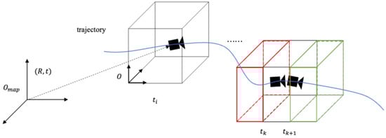 where K is the internal reference matrix of stereo vision, is a depth image, and is odometry, which denotes the coordinate transformation from the body frame to the world frame.