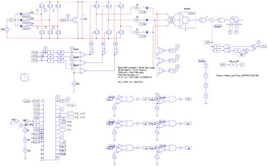 In this section we present the traction system simulation results. With the use of PSIM software from PowerSim, the whole system was simulated: both the ac-dc and the dc-dc converters, the SRPM machine and the control algorithms, from the signal acquisition step to the MTPA algorithm. A detailed schematic of the PSIM system, including the power converters and the control system, is presented in Figure 3.