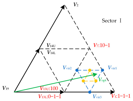where Vvirn is the extended virtual space vector, n = 1, 2, 3…; Vx,y,z and dx,y,z represent the basic space vector and corresponding duty ratio required to synthesize this vector, x, y, z ∈ [1, 2, …, 19].