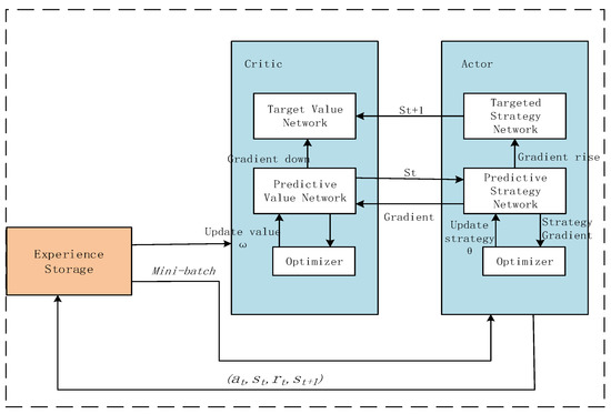 where denotes the strategy network; θ is the strategy network parameter, and the purpose is to learn and optimize the strategy to make the strategy perform better; is the value network; ω is the value network parameter, and the purpose is to learn and evaluate the value function to make the value function evaluation more accurate.