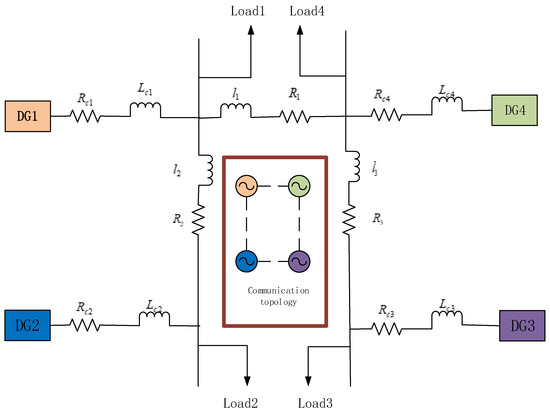 In the four distributed power supplies DG1~DG4, each distributed power supply acts as an agent that can transfer information with neighboring agents to complete distributed coordination control. In contrast, the communication topology between each agent is connected and contains a minimal directed spanning tree so that the agent system can achieve consistent convergence.