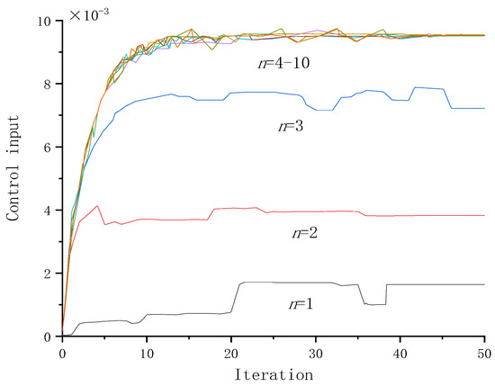 The number of neurons affects the accuracy and speed of the neural network. More neurons mean that the neural network can fit the input–output relationship more accurately, but it also takes more time. Taking the Actor action neural network model as an example to verify the influence of the number of neurons on the algorithm and choosing the input as the state feature and the output as the action distribution, we set the number of neurons in the hidden layer as 1–10; the influence of the number of neurons on the convergence is shown in Figure 7; when the number of neurons is less than four the output of the neural network is difficult to achieve convergence; when the number of neurons is greater than four can converge, in order to prevent the excessive number of neural network neurons leads to overfitting affecting the convergence speed, the change of neural network structure can be determined. Take the neural network of one of the distributed power DG1 as an example. The number of neurons n on the neural network is represented in Figure 8. Under the same data set built in the neural network, the greater the number of neurons, the better the neural network recognition effect is; when the number of neurons n = 4, the control input–output relationship of the algorithm can be accurately expressed convergence when the number of neurons continues to increase the neural network will reach the overfitting. When the number of neurons continues to increase, the neural network will reach the overfitting state and expand the network computation time.