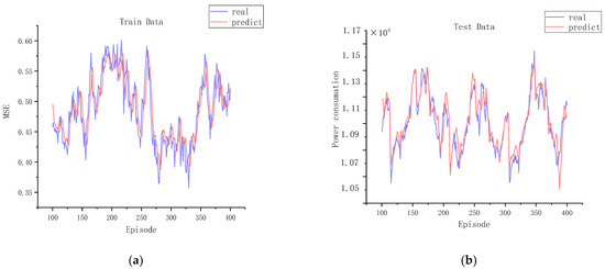 The first 361 data points were used as the training model for data input, and the last four data points were used as the test model to obtain the final experimental results compared with the real data of the original power load. Changes in data projections are shown in Figure 9.